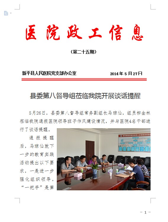 县委第八督导组莅临我院开展谈话提醒