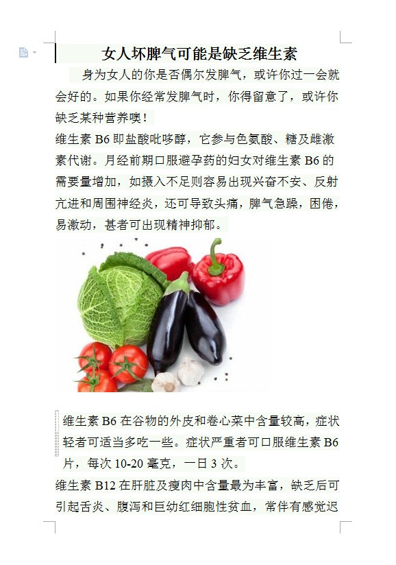 女人坏脾气可能是缺乏维生素